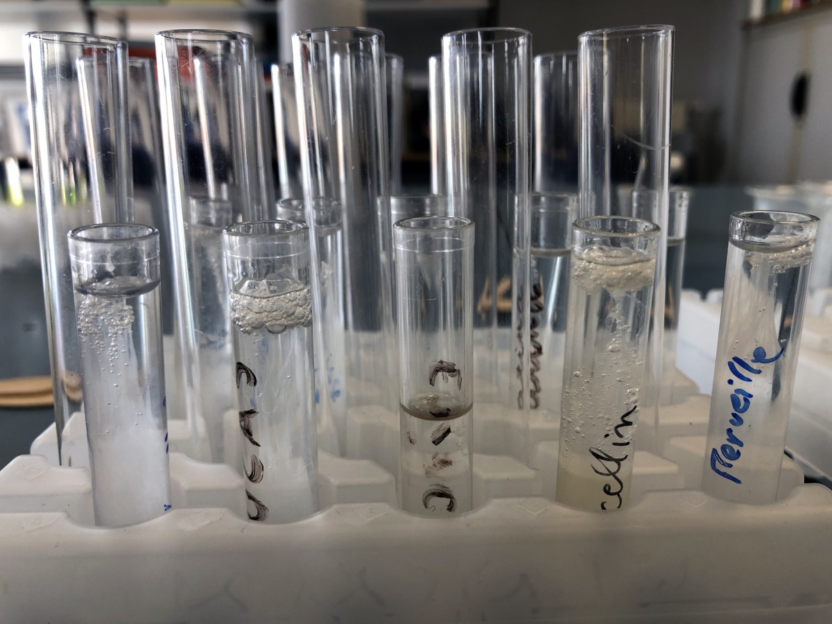 In short workshops, we make our DNA visible from saliva and simple ingredients, so that it can be transformed into a precipitate. Then we choose fruits and vegetables to do the same on plants to extract another DNA precipitate. We then mix the human and non-human DNA in a test tube.