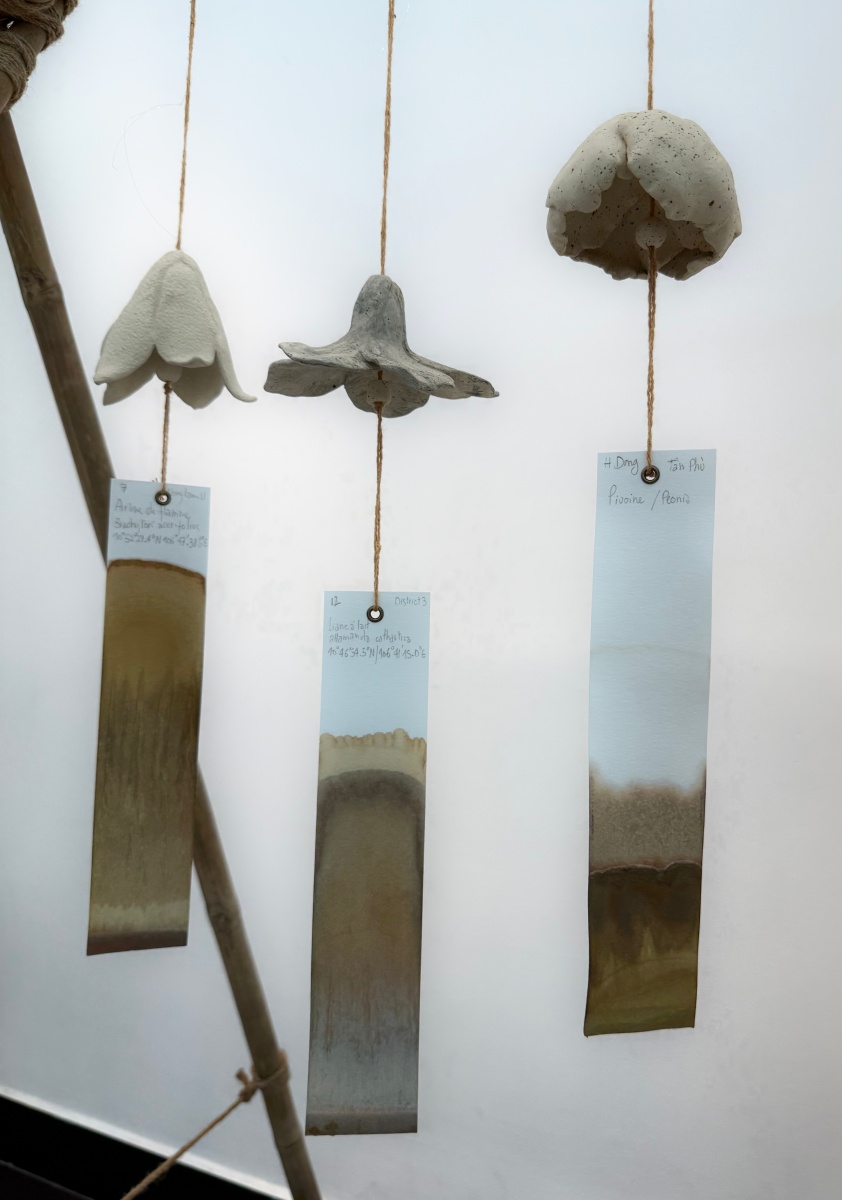 During the exhibition, Karine presented 25 wind chimes that she handcrafted from Vietnamese clay, more than half of which tell stories of flowers rooted in Vietnamese memory.