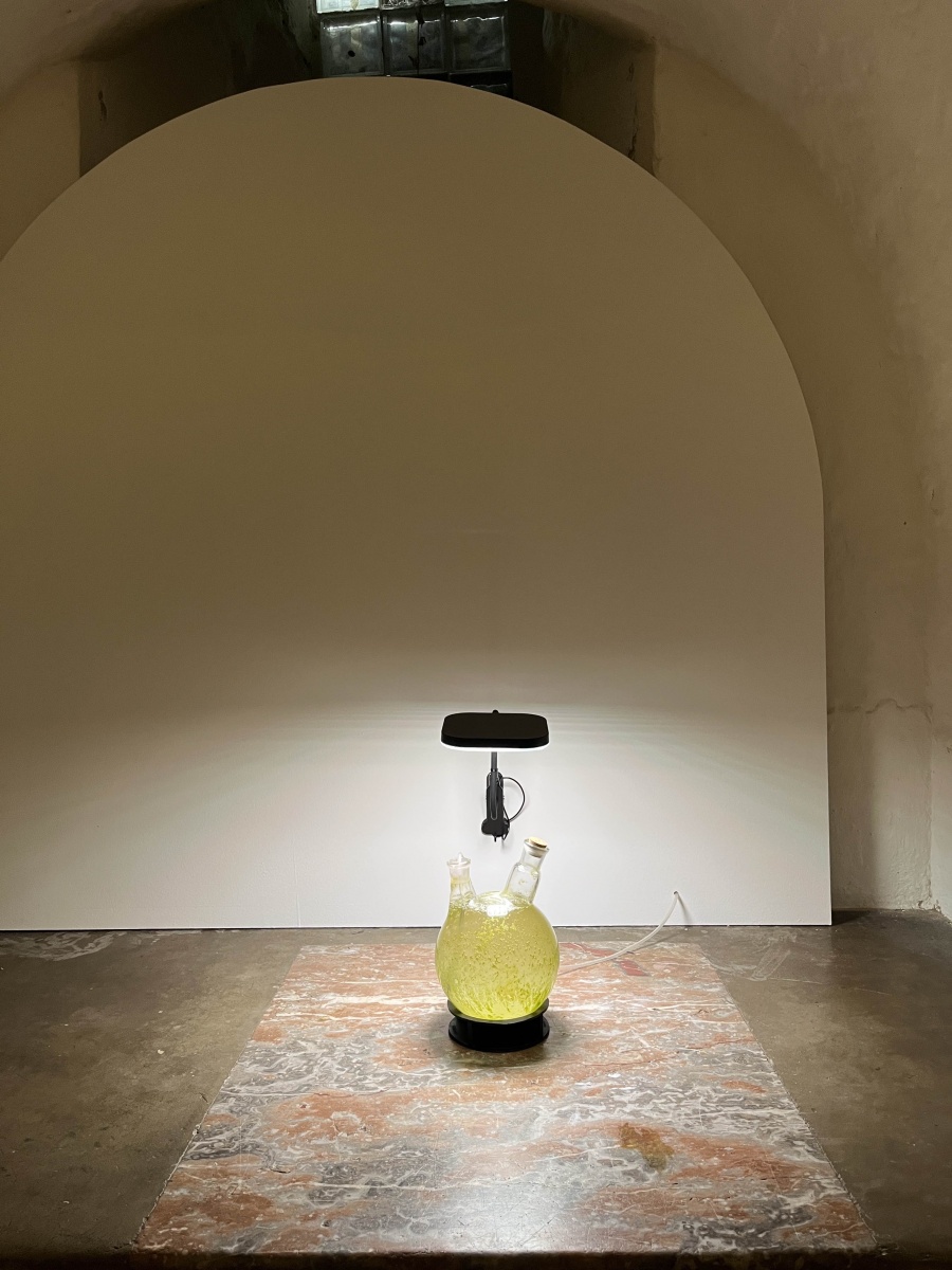 Installation aquatique, vivante et sonore, pour connecter nos microbiotes. Une expérience immersive née d’une collaboration étroite avec le microbiologiste Ludwig Jardillier et la bioacousticienne Hélène Courvoisier.