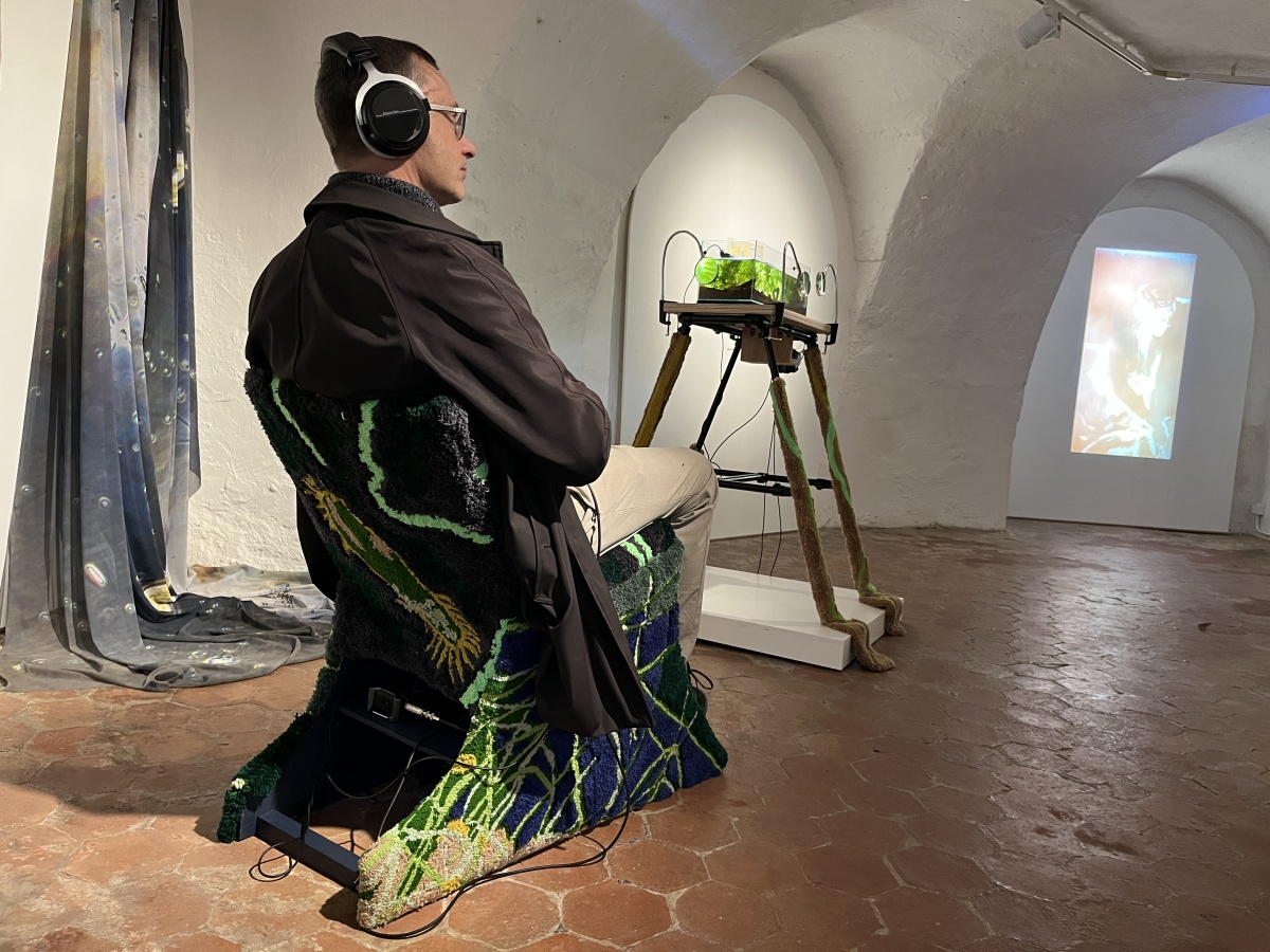 Les symbiotes vivent ensemble, ils sont partenaires toute leur existence. Symbiotes symphonie est un dispositif où différents êtres vivants cohabitent et s’écoutent en interaction. Un environnement frémissant pour imaginer des communs, la résonance entre nos corps et les milieux où nous habitons. Cette installation invite à faire silence et à observer, pour s’immerger dans ces rythmes et trouver un ajustement réciproque.