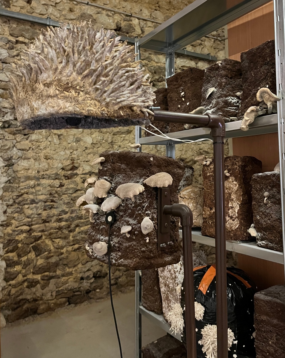 À travers cette résidence de création une question : comment les savoir-faire locaux (culture de champignons, céramique et poterie) deviennent les vecteurs d’une réflexion sur notre rapport au vivant et au temps. Entre le domestique et le sauvage, entre l’éphémère mycélien et la permanence minérale, entre les strates du sol et les vibrations de la pierre, l’exposition Paille, Terre, Pierre révèle les liens invisibles qui unissent nos gestes quotidiens aux rythmes géologiques.