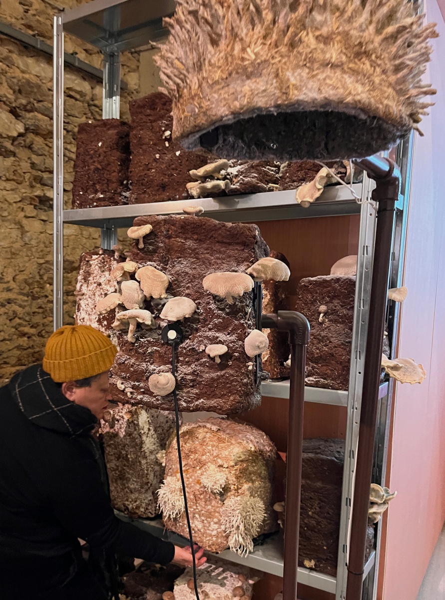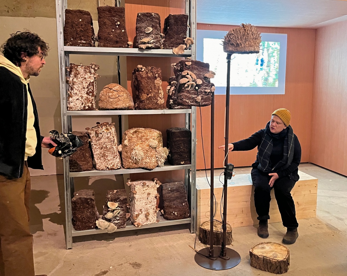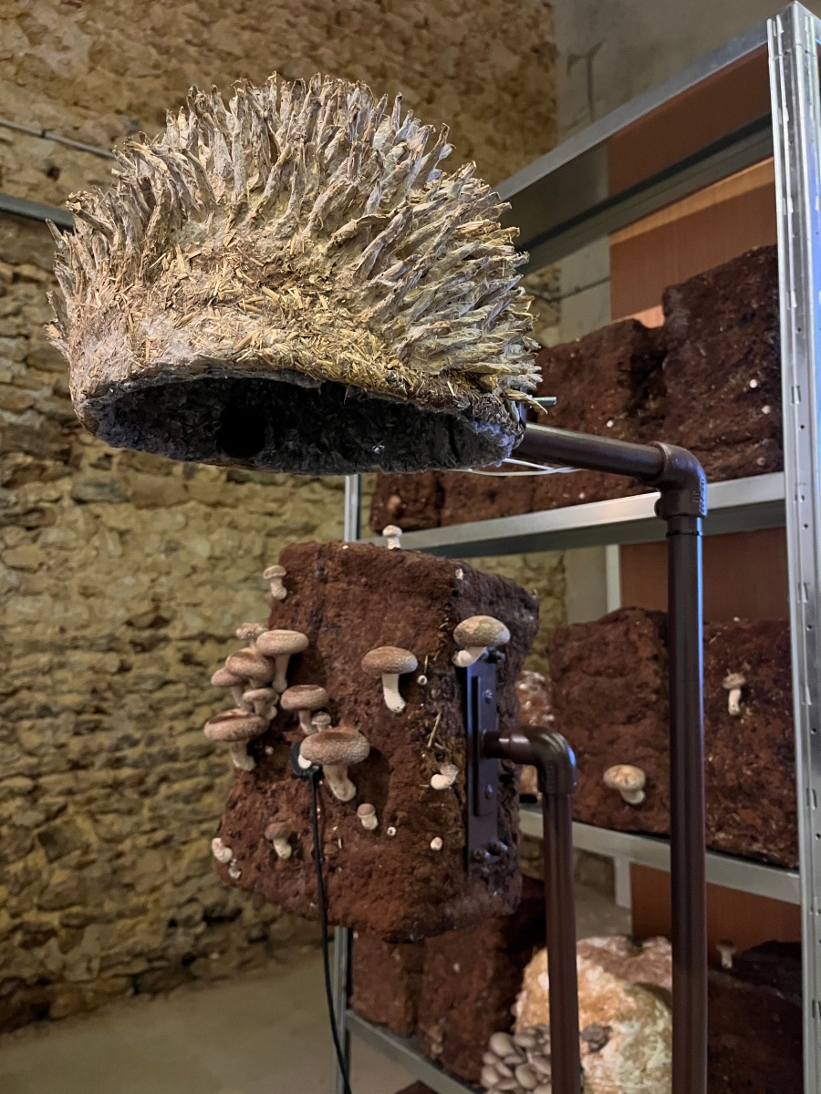 Les duos formés incarnent une philosophie du faire-ensemble où la transmission des savoirs se mêle à l’expérimentation artistique. Dans les bottes de paille où Zoltán Babos cultive ses champignons, Karine Bonneval capte les sons du mycélium et tente d’établir une communication inter-espèces par la musique ; la terre modelée par Judith Lasry se transforme en autels domestiques sous les mains de Gabrielle Manglou ; les pierres collectées autour de l’atelier de Lorraine Patoir chantent grâce aux dispositifs de Louis Pierre-Lacouture.